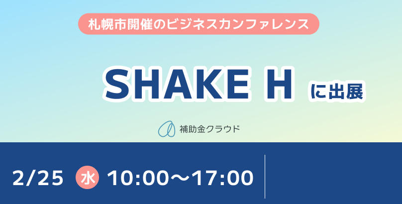 2/25(水)、補助金クラウドが札幌市開催のビジネスカンファレンス「SHAKE H」に出展します