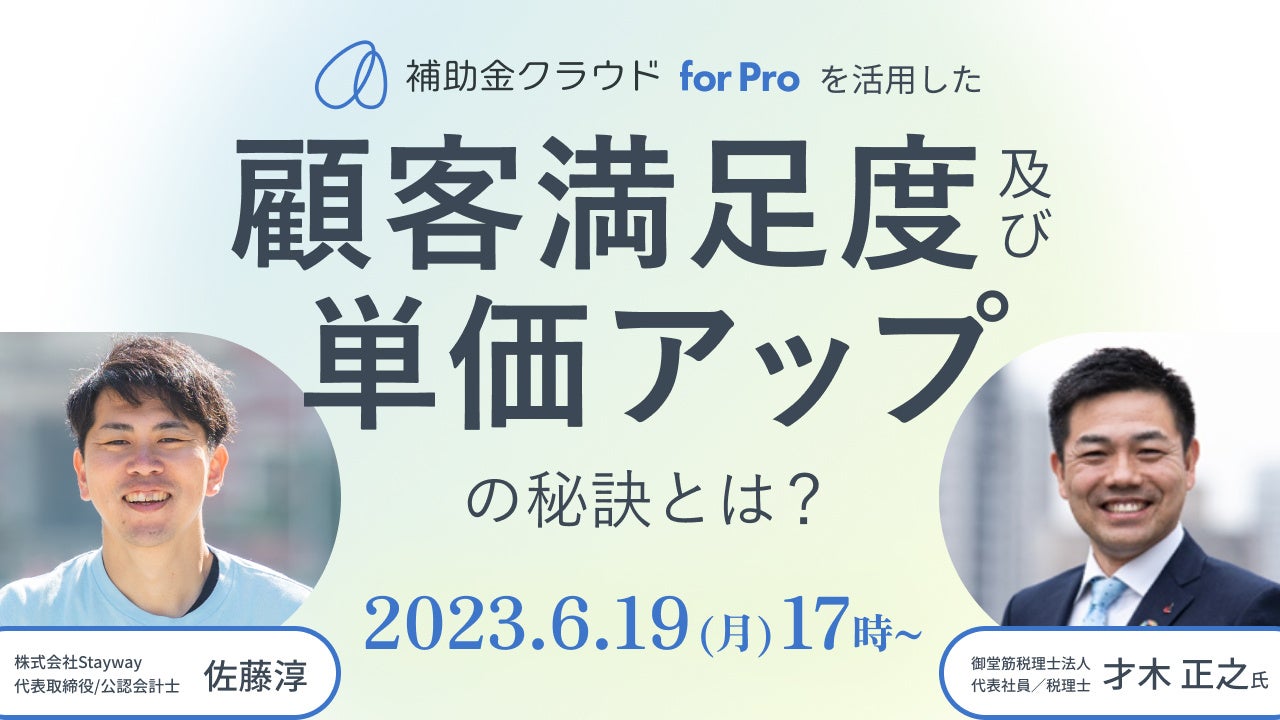 2023年6月19日17時@Zoomより、「補助金クラウドforProを活用した顧客満足度及び単価アップの秘訣とは?」を実施いたします。